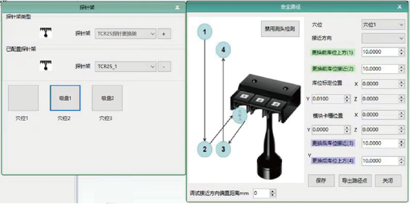 探测系统支持天准自研以及雷尼绍全系探测系统;